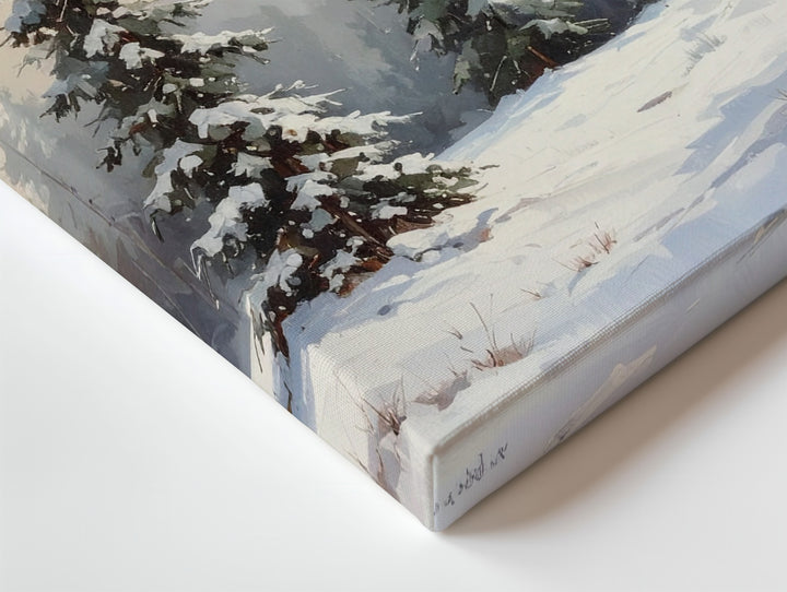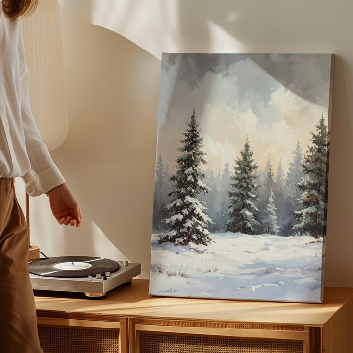 Snow-Covered Evergreens Canvas – Vintage Winter Serenity Wall Art