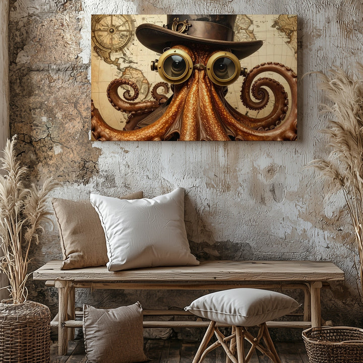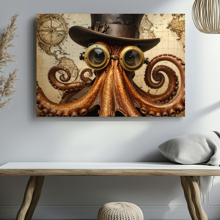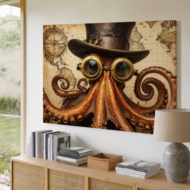 Steampunk Octopus Canvas – Whimsical Victorian Nautical Digital Art
