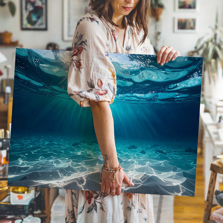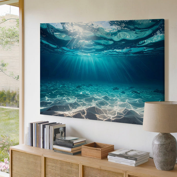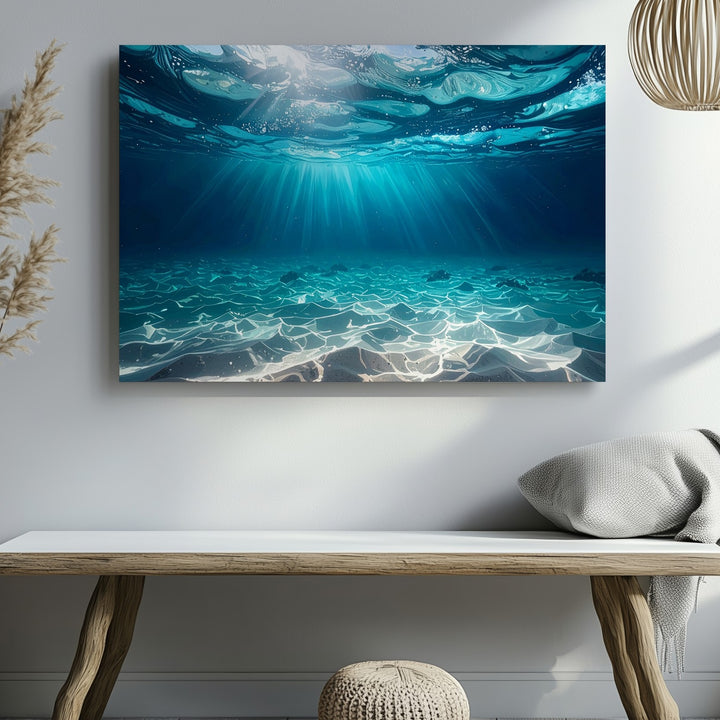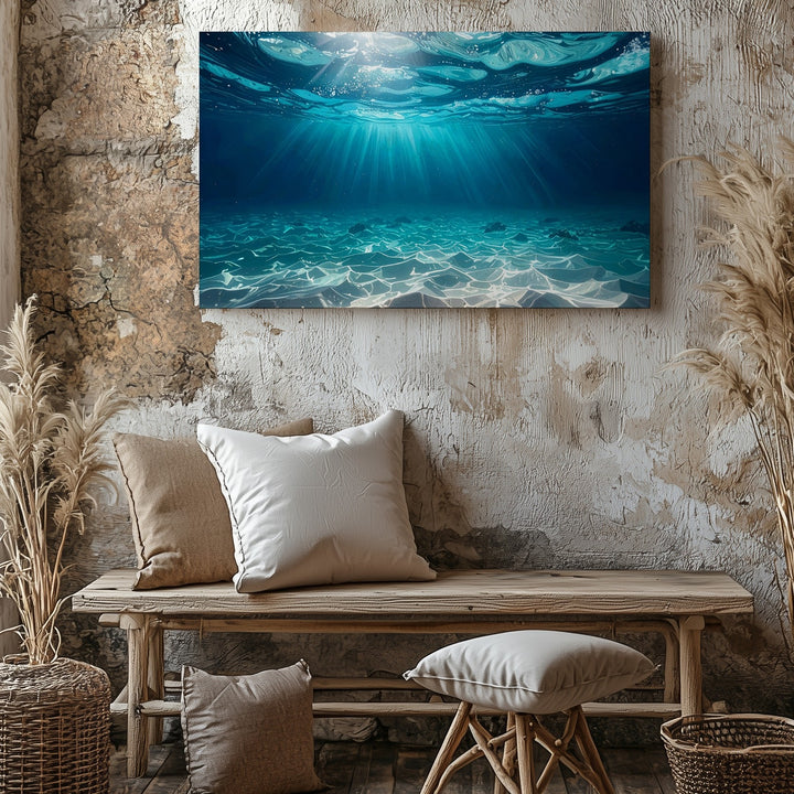 Tranquil Ocean Depths Canvas – Sunlit Seabed from Below the Waves