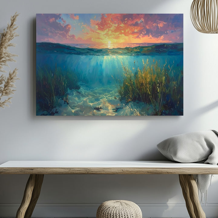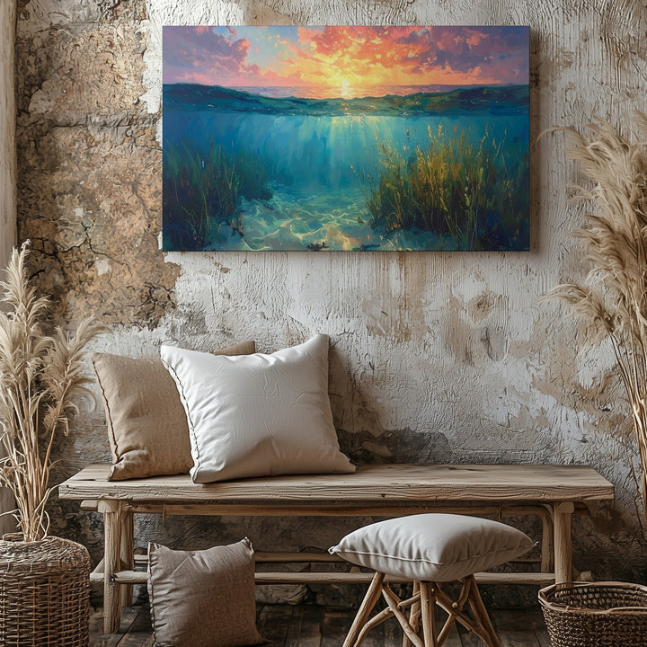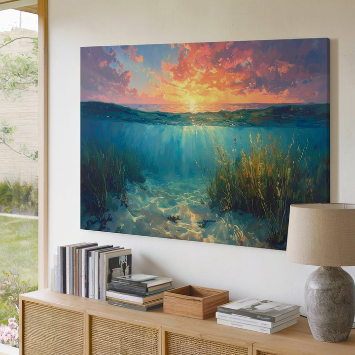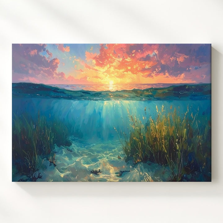 Sunset Mirror Canvas – Panoramic Ocean View Above and Below