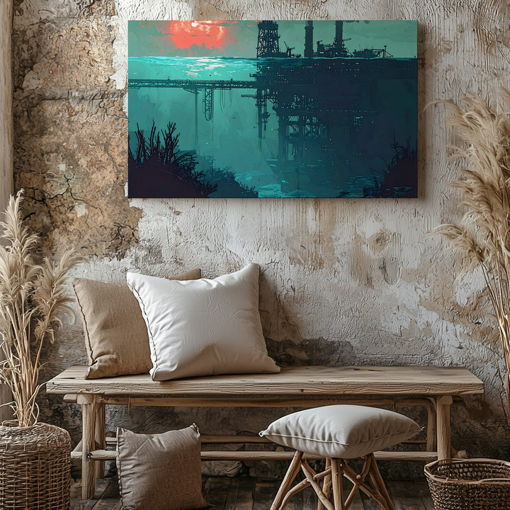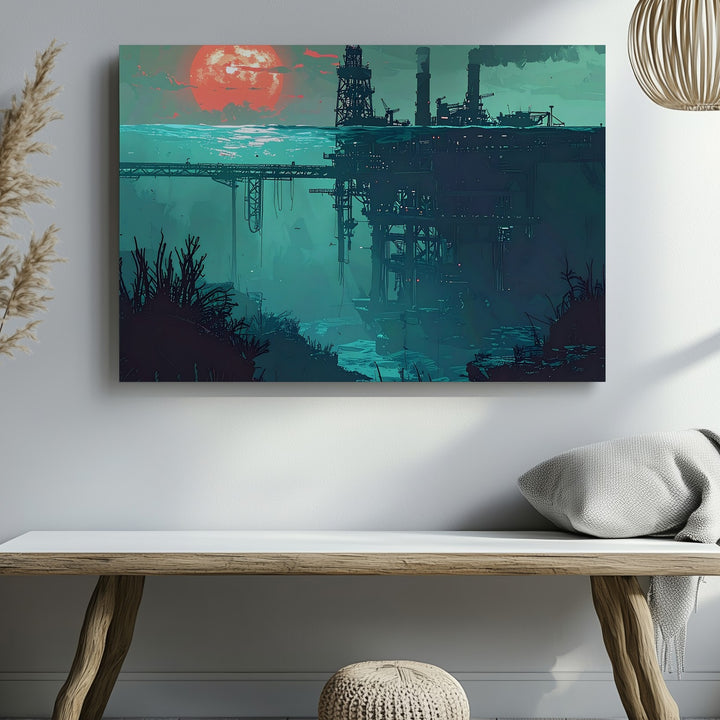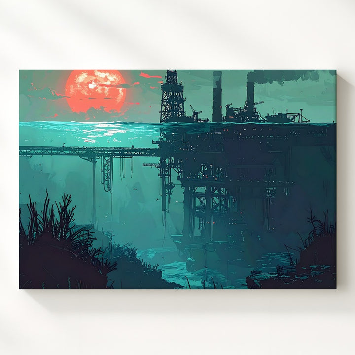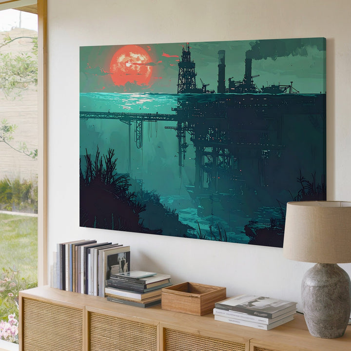 Submerged Industry Canvas – Surreal Deep-Sea Oil Platform Illustration