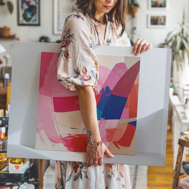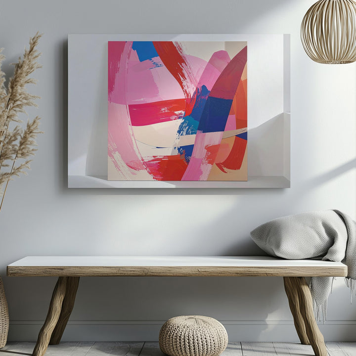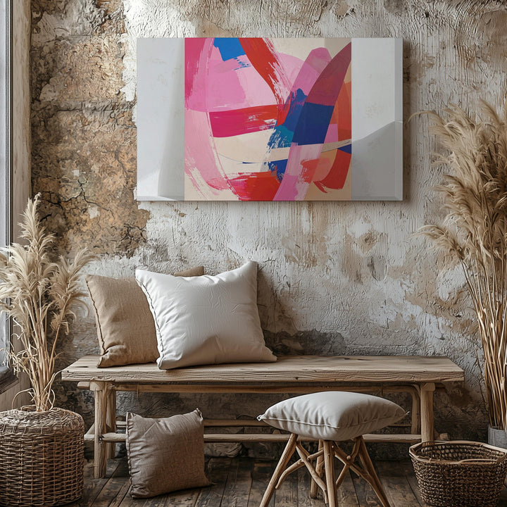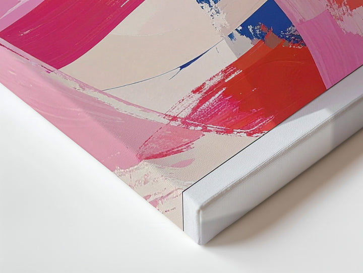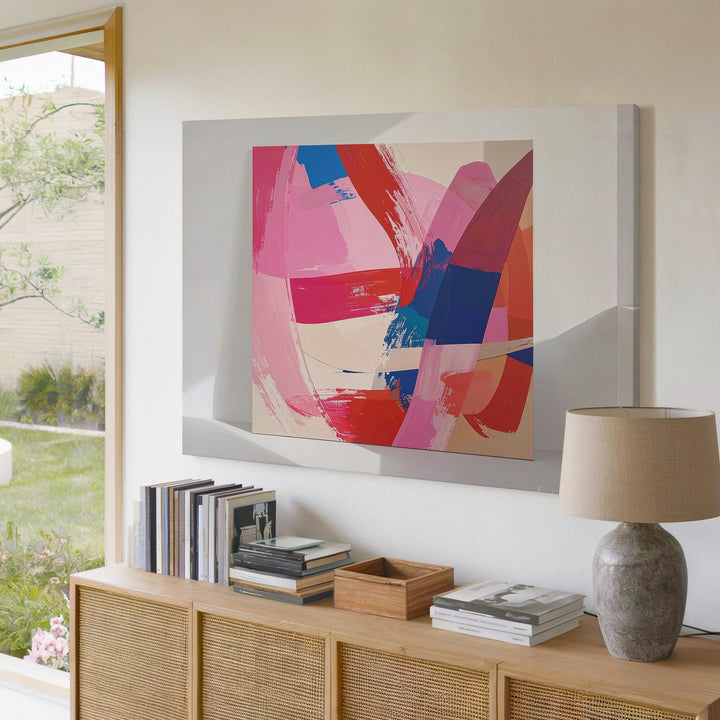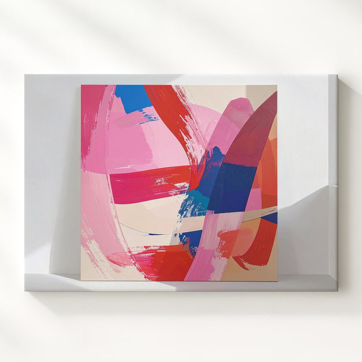 This captivating abstract canvas bursts with life through dynamic brushstrokes in radiant magenta, passionate reds, deep cobalt blues, and soft beige tones. Every bold swipe and subtle texture captures the raw energy of emotion, making it an expressive centerpiece that resonates beyond words.