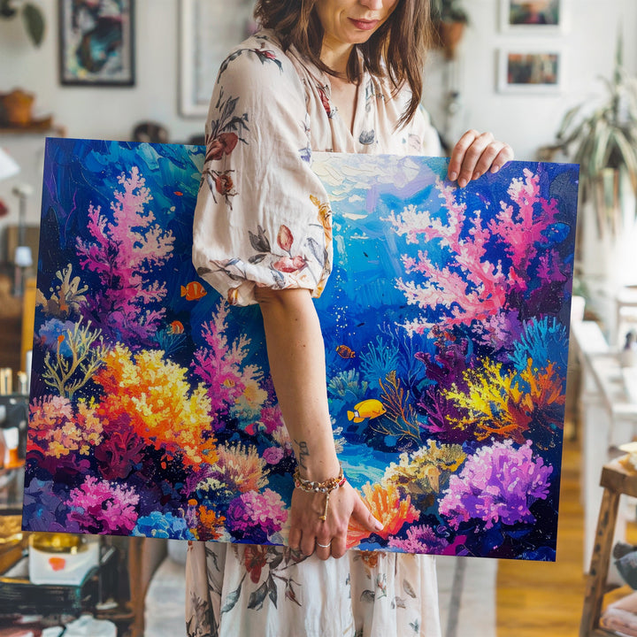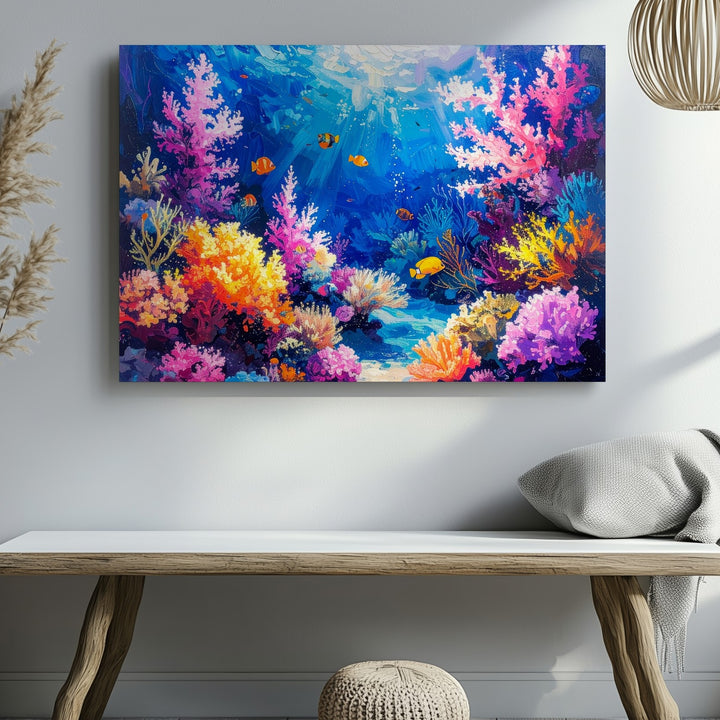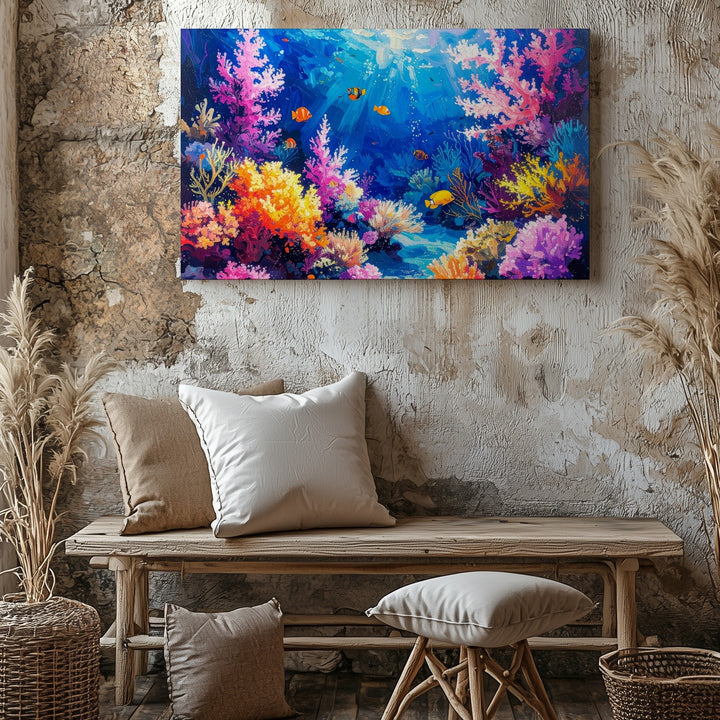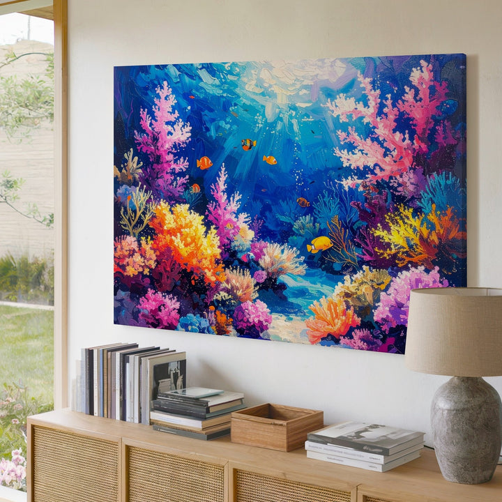 Vibrant Coral Reef Canvas – Bold Painterly Underwater Scene