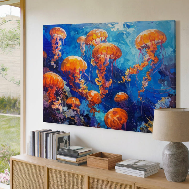 Vibrant Orange Jellyfish Canvas – Whimsical Underwater Art