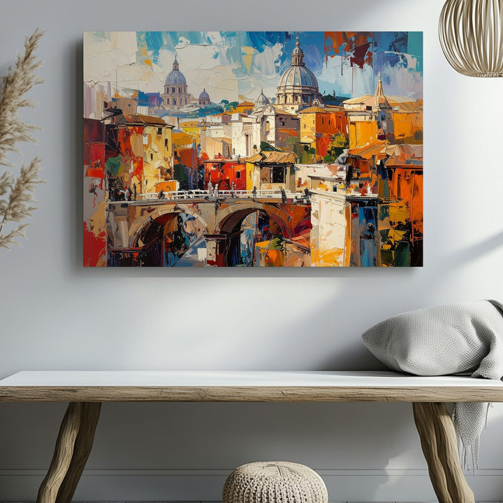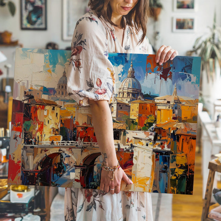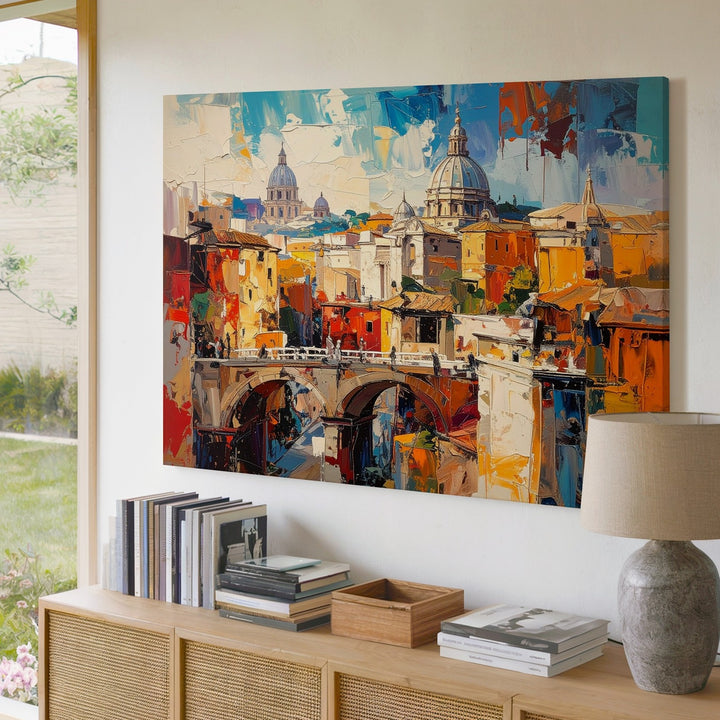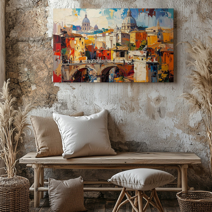 Vibrant Rome Cityscape Canvas – Textured European Architecture Art