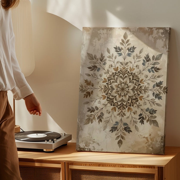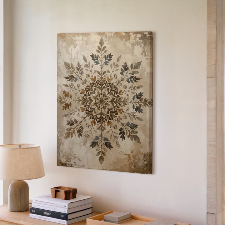 Vintage Floral Snowflake Canvas – Botanical Winter Design in Earthy Tones