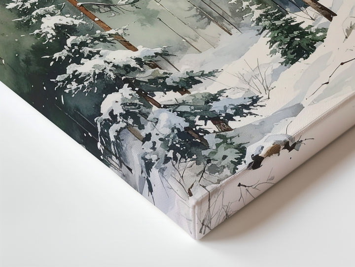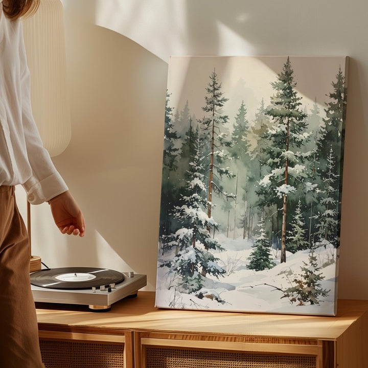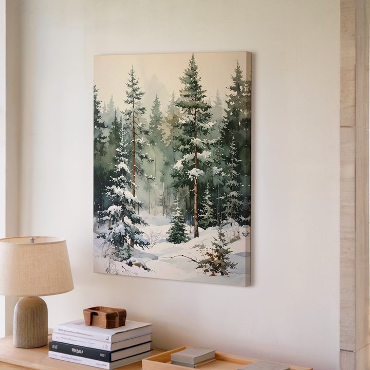 Watercolor Winter Pines Canvas – Minimalist Serene Forest Art