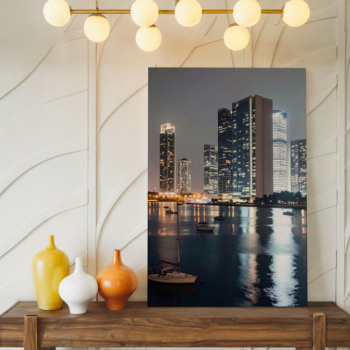 Ideal for those who appreciate contemporary cityscapes, waterfront views, or the calming elegance of a modern night scene.