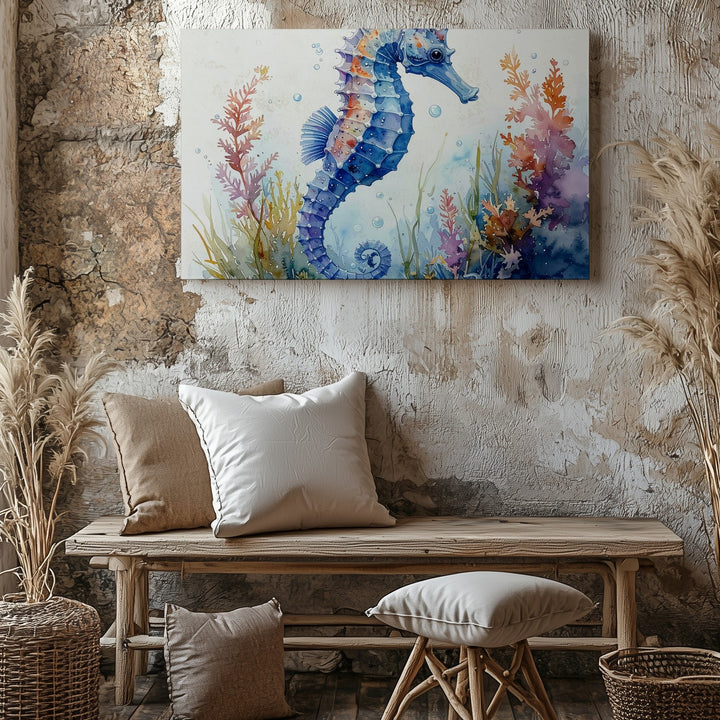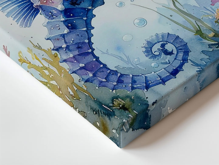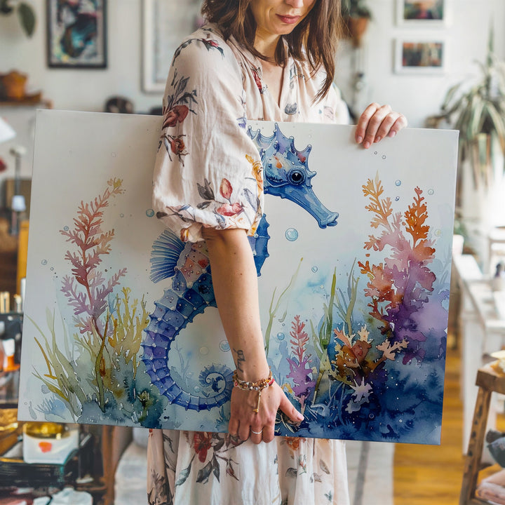 Whimsical Seahorse Watercolor Canvas – Dreamy Underwater Marine Art