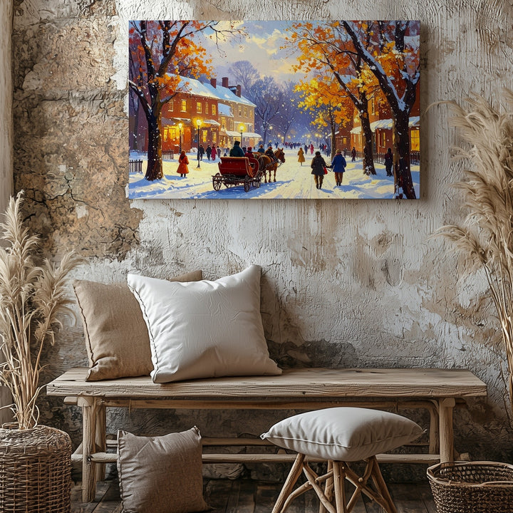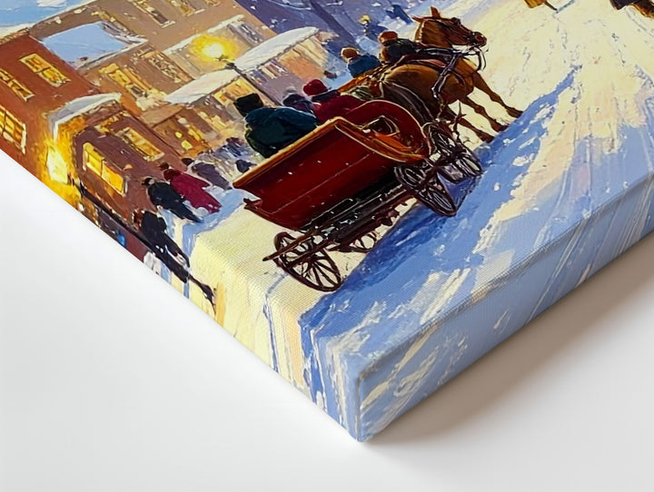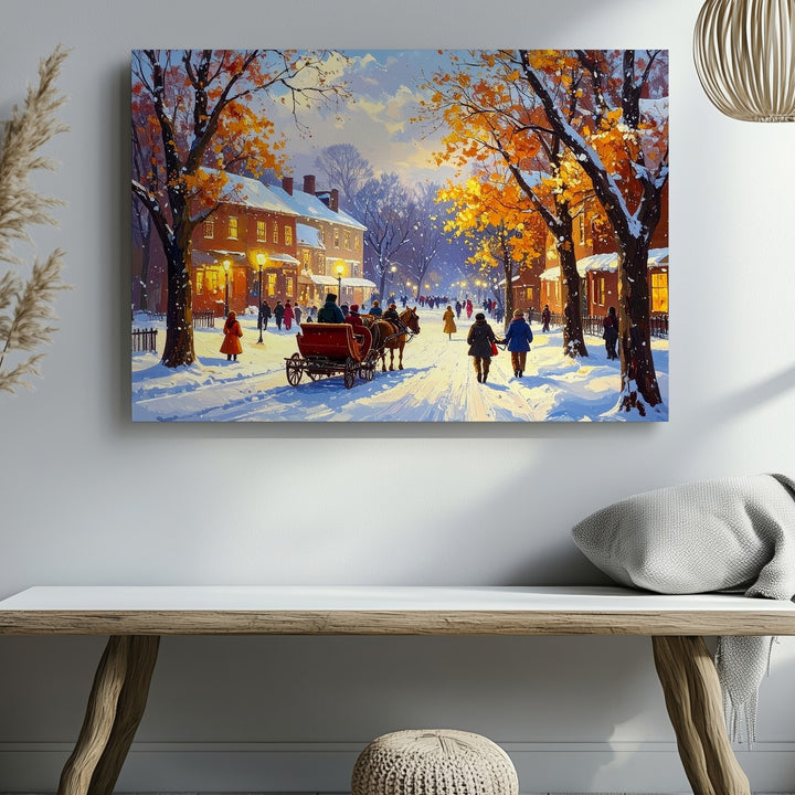 Horse-Drawn Sleigh Ride Canvas – Nostalgic Winter Town Wall Art