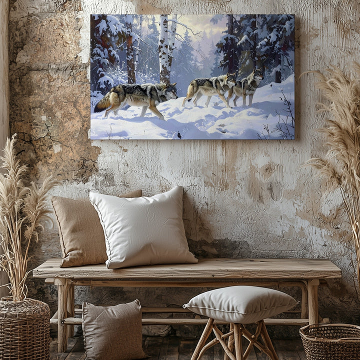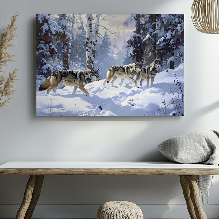 Winter Wolves Canvas – Snowy Forest Wildlife Scene Wall Art