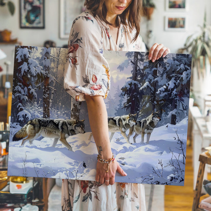 • Dynamic Presence: Wolves mid-stride convey alertness, movement, and purpose.