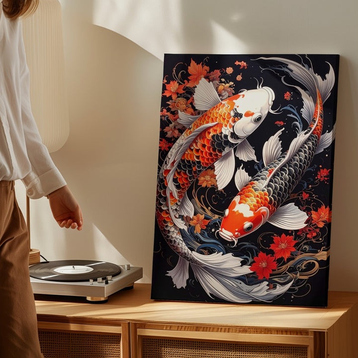 Yin-Yang Koi Fish Canvas – Traditional Japanese Art with a Modern Twist